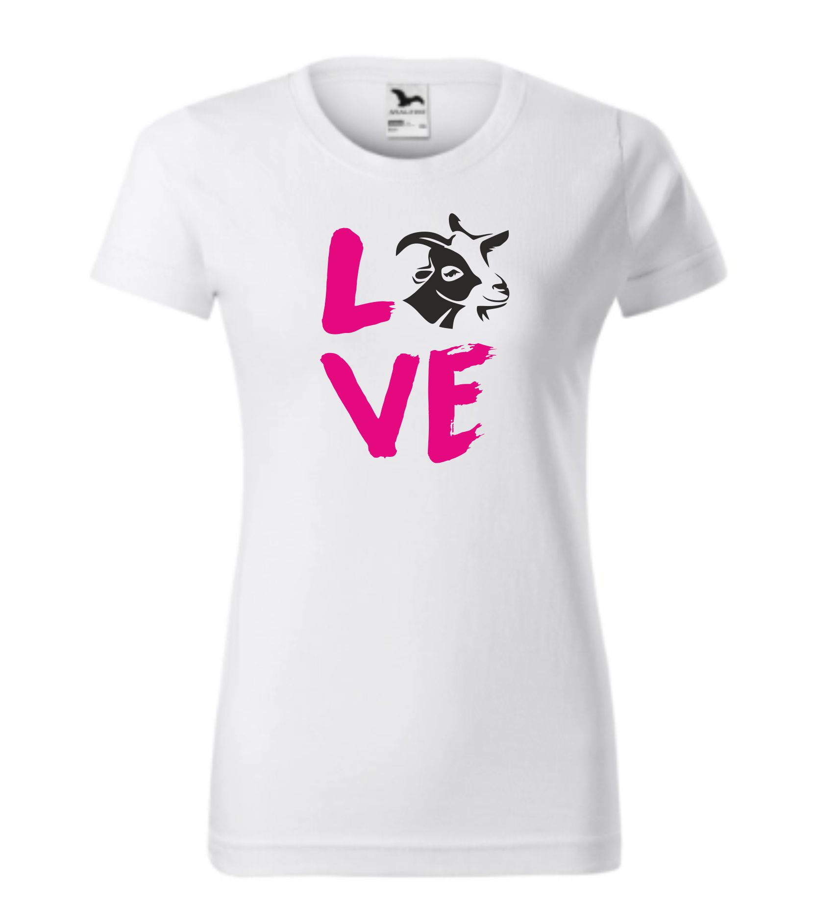 triko se nápisem love a hlavou kozy
