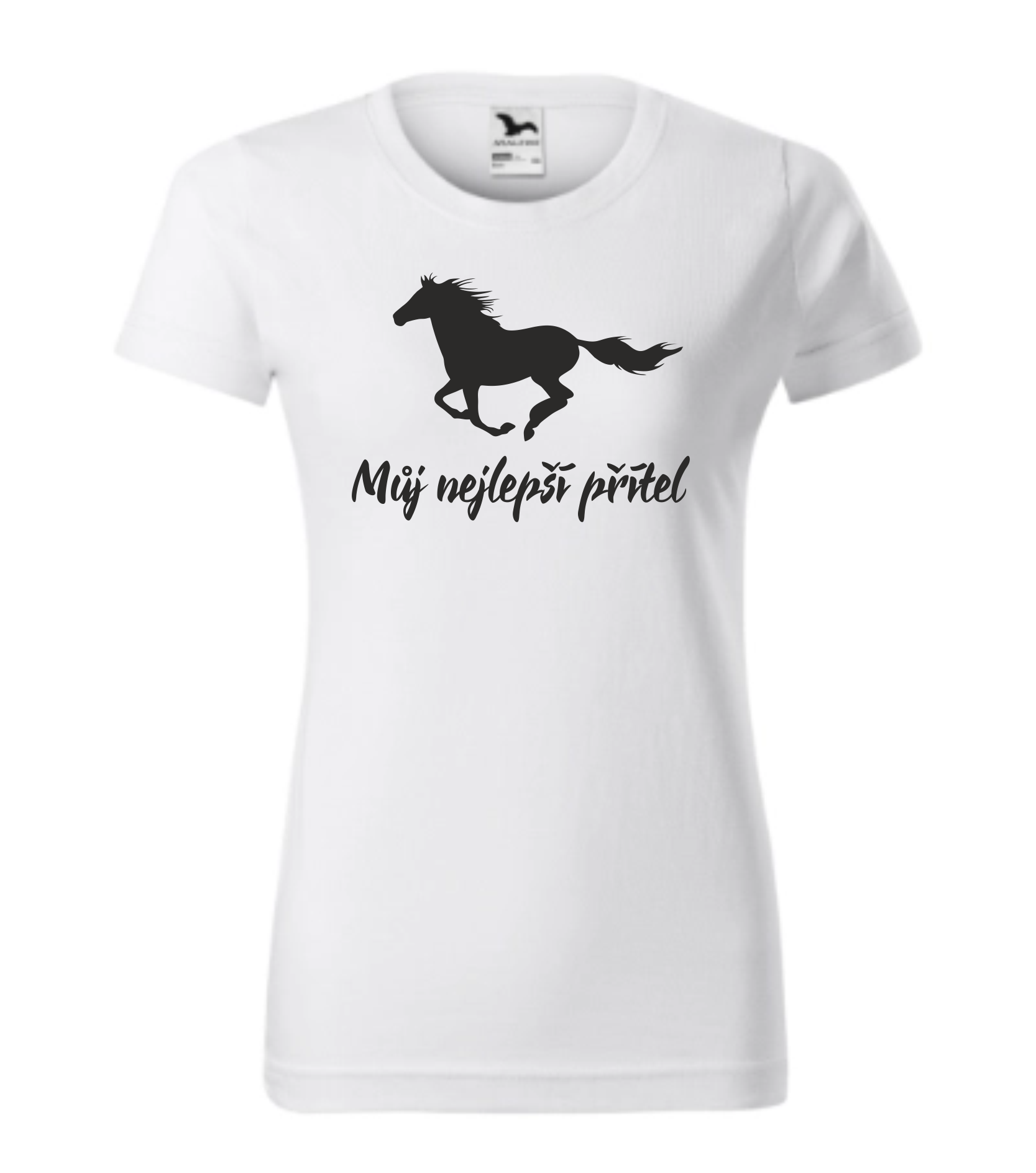 Tričko dámské Potisk s motivem Můj nejlepší přítel, s možností volby plemena koně, vybrané plemeno napíšete v košíku do poznámek:   fríský kůň arab teplokrevník plnokrevník paint horse quarter horse hafling hannoverský kůň achaltekinský kůň percheron starokladrubský kůň appalosa chladnokrevník... celý popis