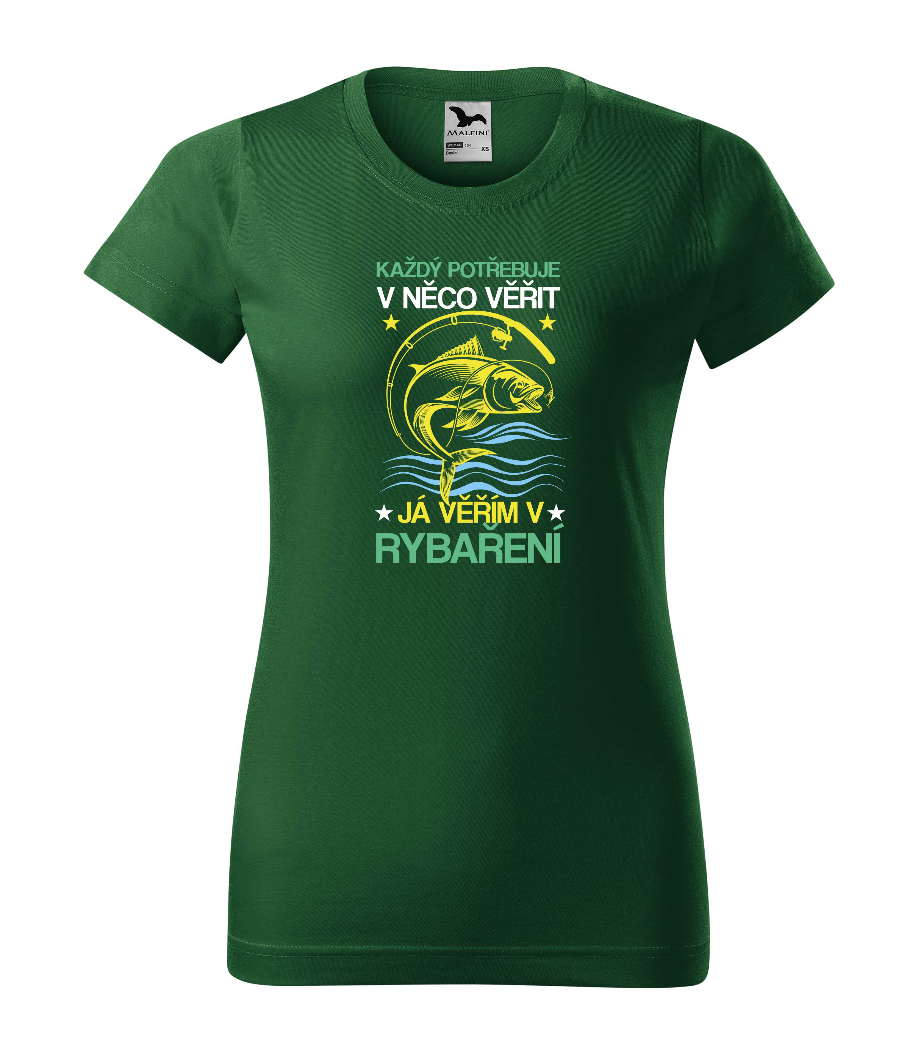 Tričko dámské i pánské každý potřebuje v něco věřit, já věřím v rybaření